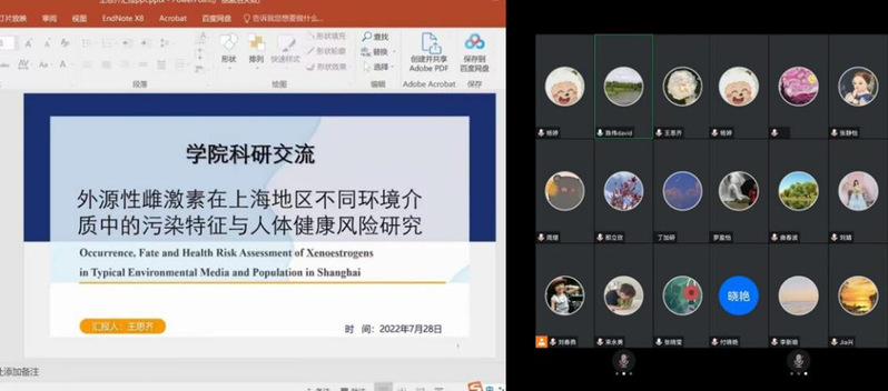 728日下午,学院邀请王思齐老师做了《外源性雌激素在上海地区不同环境介质中的污染特征与人体健康风险研究》的科研交流,学院全体教师参会。