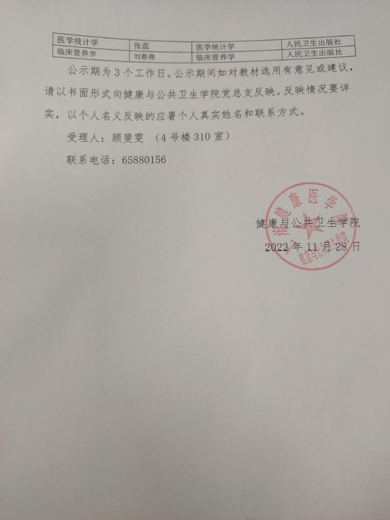 公示期为3个工作日。公示期间如对教材选用有意见或建议,请以书面形式向永利304官网唯一党总支反映。反映情况要详实,以个人名义反映的应署个人真实姓名和联系方式。