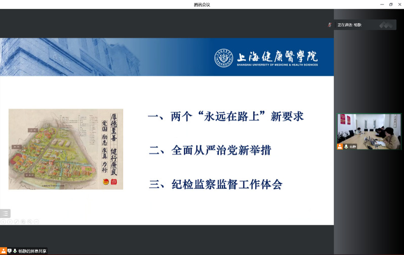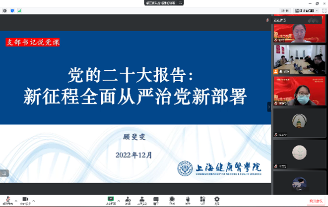 2022年12月5日,永利304官网唯一党总支开展了“新征程全面从严治党新部署”党的二十大精神专题党课,由党总支书记、学生党支部书记顾斐雯主讲,本次学习采用线上线下相结合形式,同时作为学院中心组学习、政治学习,全院教职工党员、群众24人,学生预备党员6人参会。