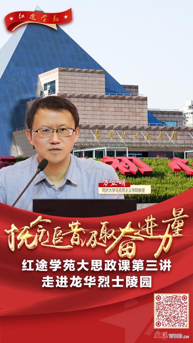 3月10日下午,由市委宣传部联合市各相关单位推出的“学习党的二十大精神·红途学苑”百节大思政课第三讲在龙华烈士陵园开讲。同济大学马克思主义学院教授万立明现场授课,为60多名现场观众生动讲述党的二十大报告的新表述、新论断与思想。专家讲座结合龙华烈士陵园的导赏课程和实地参观,让参与者切身感悟信仰的力量,为大家呈现了一堂生动的实景党课。