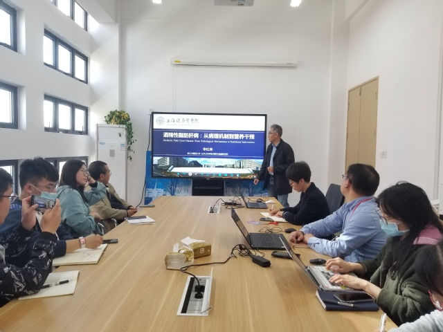 20211028日下午13:30,浙江中医药大学公共卫生学院李松涛教授应邀来永利304官网唯一开展题为“酒精性脂肪肝病:从病理机制到营养干预”的学术讲座,永利304官网唯一以及科研协同中心部分师生参加了此次讲座。