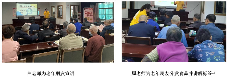 2023年5月17日星期三上午9点,永利304官网唯一的师生走进上海市浦东新区旗杆村社区,为50多名老年党员朋友带去了食品营养与健康的知识。曲春波老师采用宣讲的形式为老年朋友送去了“营养小标签,健康大学问”的主题讲座,介绍了什么是配料表,为什么要看营养标签,怎样吃“零食”才是健康的。宣讲过程中,周秀娟老师为老年朋友分发了超市中常见的几种预包装食品,通过互动交流的形式,带领老年朋友认识食品标签,鉴别健康食品和垃圾食品。