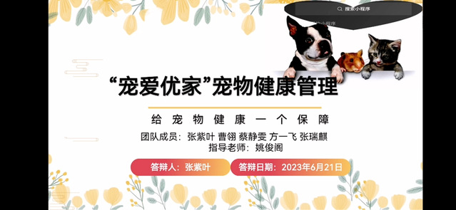 张紫叶同学和她的团队成员带来的是“‘宠爱优家’宠物健康管理”项目。该项目从宠物健康管理的需求出发,围绕宠物与主人的实际需求与宠物医疗服务的提升来进行优化。“宠爱优家”平台将整合各类宠物健康管理的服务和资源,为宠物主人提供全方位的健康管理方案。该平台将通过整合宠物医院、宠物专家、药店等相关服务资源,为宠物主人提供便捷且高质量的宠物医疗服务。