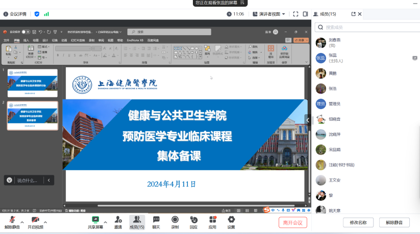 为了增强附属医院教师的教学能力和教学水平,提高预防医学专业教学质量, 2024年4月11日下午,附属崇明医院开展了预防医学专业临床课程集体备课活动。上海交通大学医学院教务处处长钮晓音、上海市同仁医院肾内科副主任朱鼎玉、永利304官网唯一临床医学院专业主任李晨蕾作为专家出席了本次活动。崇明医院相关领导和教师团队、永利304官网唯一预防医学专业相关教师等参加了此次活动。