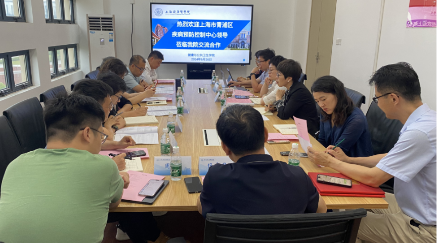 继2021年12月我校与青浦区卫生健康委员会签订《合作共建“上健医-青浦”紧密型医教联合体框架协议》后,经过双方共同努力,在公共卫生研究与实践共建、学科科研水平提升等方面取得了显著成效。为进一步推进合作,我院邀请青浦区疾病预防控制中心领导班子成员与各业务板块负责人于2024年6月26日前来交流并签署深入合作协议。