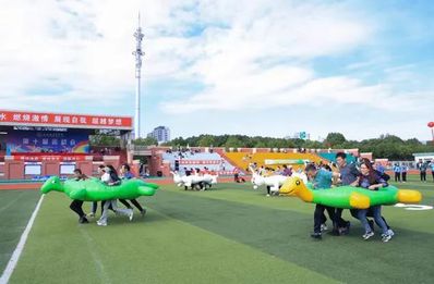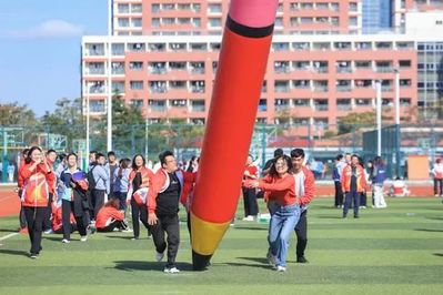 教职工们配合默契,挑战自我,乐中运动别有一番趣味。