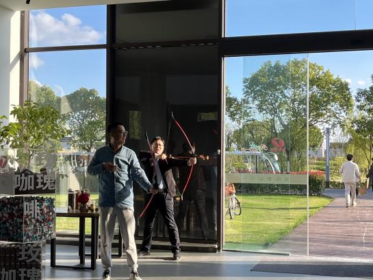 自由活动中,老师们围坐在一起畅谈学院新发展,交流科研、教学经验成果。老师们表示,要将革命传统精神与教学教育相结合,将个人成长与学校发展目标相结合,坚定不移落实好立德树人根本任务。要认真领会党的二十届三中全会和全国教育大会精神实质,在推进教育强国建设中勇于担当。这次交流增强了彼此之间的沟通,提升了团队凝聚力。此外,老师们还尝试了趣味射箭游戏和国风投壶游戏。