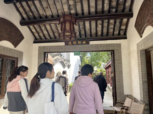 在秋日的午后,老师们游览了连民村,先途经连子稻田再到符氏老宅进行了参观。符氏老宅曾经是新四军抗日游击纵队浦东支队驻扎地旧址之一,老师们在这里随着现场工作人员,触摸历史印痕,追忆红色精神。连民湖畔,风光怡人,伴随国家乡村振兴战略的实施,连民村在自身资源优势的基础上积极发展新产业。老师们在这里感受到了农业强、农村美、农民富的一派新农村建设景象。