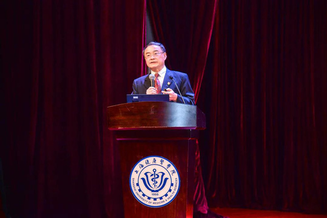 “直挂云帆进浦东,挥斥方遒聚健康”。黄钢校长对“健康”后浪们克服疫情难关、决胜高考闯关,成功入关浦江之畔的“健康园”表示祝贺。他指出医学是有挑战的科学,需要在解决实际问题的过程中不断创新发展。作为上健医的后浪们,你们一定会攀到更高的高峰,领略更美的风景,让青春的活力焕发更加蓬勃的生机。他承诺:“在未来的岁月里,以我之所能,尽我之全力,为你们的成长与进步架梯铺路,为你们创造尽可能完善的学习与生活环境,与你们共同掀开人生精彩的篇章。”最后他也殷切寄语:奋斗永不停歇,拼搏永不言退。希望同学们带着学校的嘱托和期望,带着“健康人”的特质和精神,不畏艰辛,勇攀高峰!