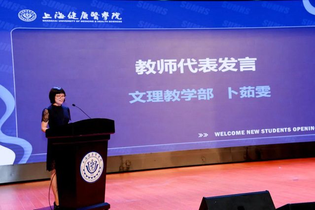 教师代表、第四届上海高校青年教师教学竞赛二等奖获得者、文理教学部卜茹雯老师,她以“心有所爱,学有所成,志有所达”为题,希望同学们心怀大爱,心系他人、心系学校、心系民众,把自己培养成为一名当代真正意义上的“大”学生。不负韶华,努力拼搏,刻苦专研专业知识,牢记奋斗的青春最美丽。愿同学们在激烈的竞争中,在种种不尽如人意的现实面前,能够坚守最初的梦想,保持自己的初心,勇攀科学高峰,成就卓越人生,实践我校校训“厚德至善,健行康民”。