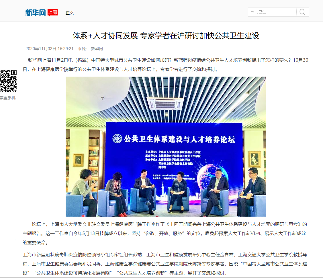新华网报道我院承办的公共卫生论坛,助力上海市公共卫生建设