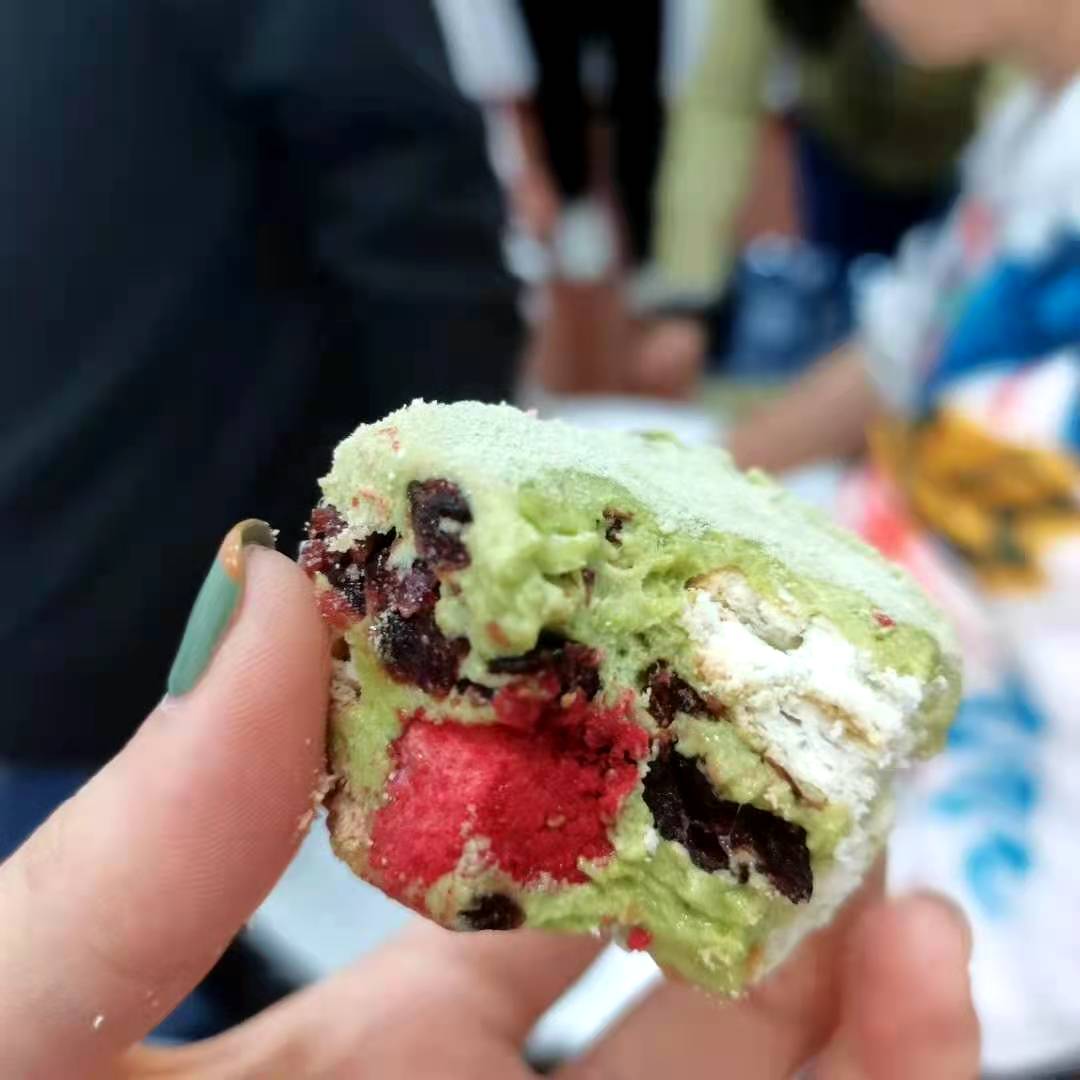 在活动开始前两天,同学们的美食厨房就开始准备起来了,所有同学齐上阵,在美食大师郁欣珉同学的指挥下,称量-制作-切糖-包装等工作一气呵成,为活动准备了足够多的美食。