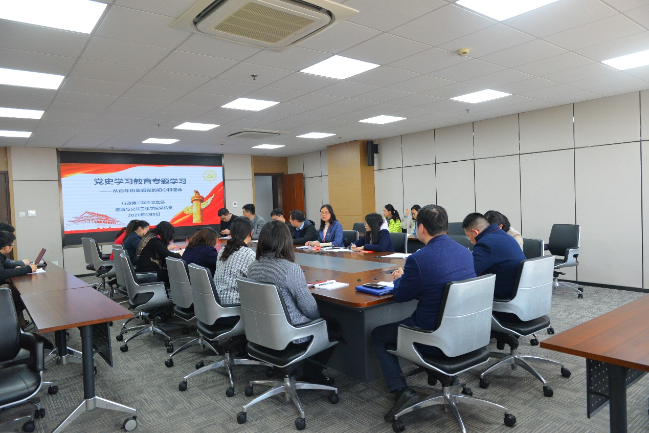 4月8日下午,永利304官网唯一党总支与行政第三联合党支部在北苑4号楼902会议室联合举办党史学习教育专题报告会,开展党史专题学习。两个部门的全体教职员工参加学习。会议由公卫学院党总支书记陈泓主持。行政第三联合党支部书记于杨做了《从百年历史看党的初心和使命》的专题辅导报告。