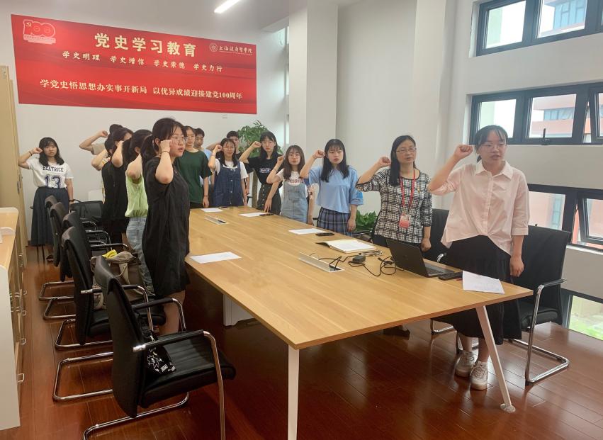 随后,在刘又铭的带领下,新团员右手握拳,站在烈士们用鲜血染红的团旗下,进行庄严的宣誓。所有的老团员代表、学院党章学习小组成员与新团员一起重温入团誓词。铿锵嘹亮的宣誓词,表达了坚定不移的初心梦。