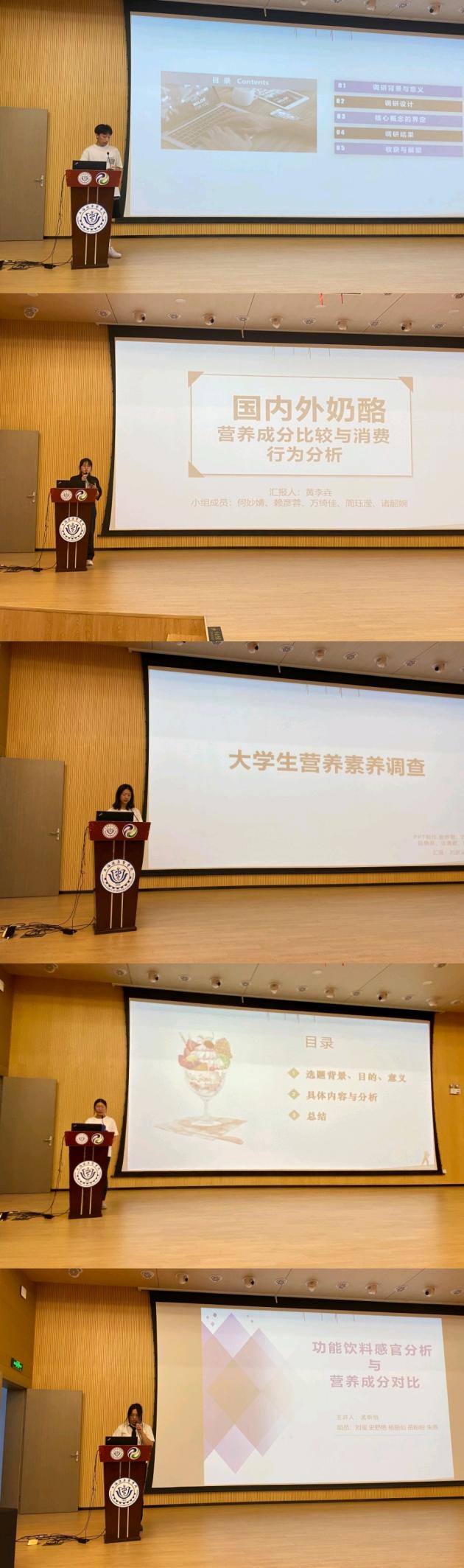 同学们在指导老师的帮助下,都顺利完成了小学期的见习,十个小组内容分别是“饮料调查”、“常见零食中核心营养素及能量调查与分析”、“那些年我们喝过的网红饮料”、“国产和进口预包装食品中钠含量的调查研究”、“超市糖尿病人食用食品”、“婴幼儿辅食”、“国内外奶酪营养成分比较与消费行为分析”、“大学生营养素养调查”、“关于冰淇淋中食品添加剂的调查与分析”、“功能饮料感官评价与营养成分对比”。